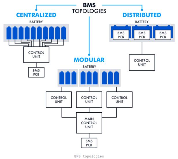 電化學(xué)儲(chǔ)能系統(tǒng)主要由電池組、電池管理系統(tǒng)(BMS)、能量管理系統(tǒng)(EMS)、儲(chǔ)能逆變器(PCS)以及其他電氣設(shè)備構(gòu)成。BMS是其中的核心組件之一,主要用于智能化管理及維護(hù)各電池單元,實(shí)時(shí)監(jiān)測(cè)電池SOC、SOH 等運(yùn)行狀態(tài),防止電池本體或系統(tǒng)出現(xiàn)安全風(fēng)險(xiǎn),助力儲(chǔ)能電池的安全、高效使用。 儲(chǔ)能系統(tǒng)中的電池管理系統(tǒng)(BMS)是保證儲(chǔ)能系統(tǒng)安全和性能穩(wěn)定的重要組成部分?,F(xiàn)在市場(chǎng)上主要存在三種類(lèi)型的BMS技術(shù),包括分布式BMS、集中式BMS和模塊化BMS。